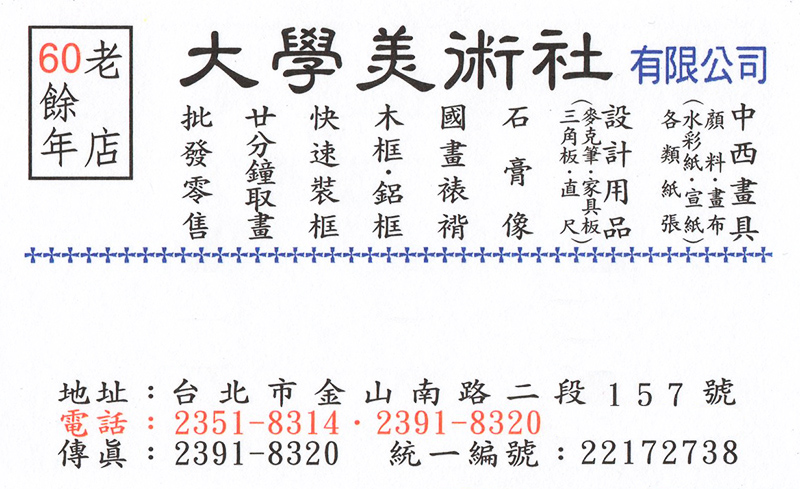 大學美術社還銷售各項專業美術工具及材料,附近師範大學、一般美術相關科系、社會人士,如有想購買之美術用品,也都會來「大學美術社」購買。